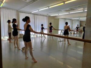スタジオよりもかなり大きなホール。どこの袖から出て、どこまで出る等、舞台では踊り以外にも色々気をつけないといけないことがあります。本番前に一度大きな舞台を確認でき良い練習になりました。